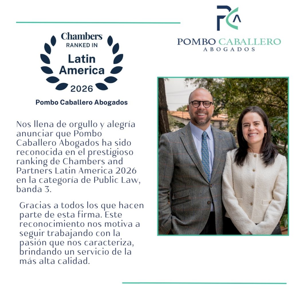 Nos llena de orgullo y alegría anunciar que Pombo Caballero Abogados ha sido reconocida en el prestigioso ranking de Chambers and Partners Latin America 2026 en la categoría de Public Law, en la Banda 3.